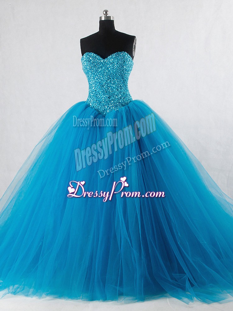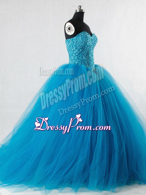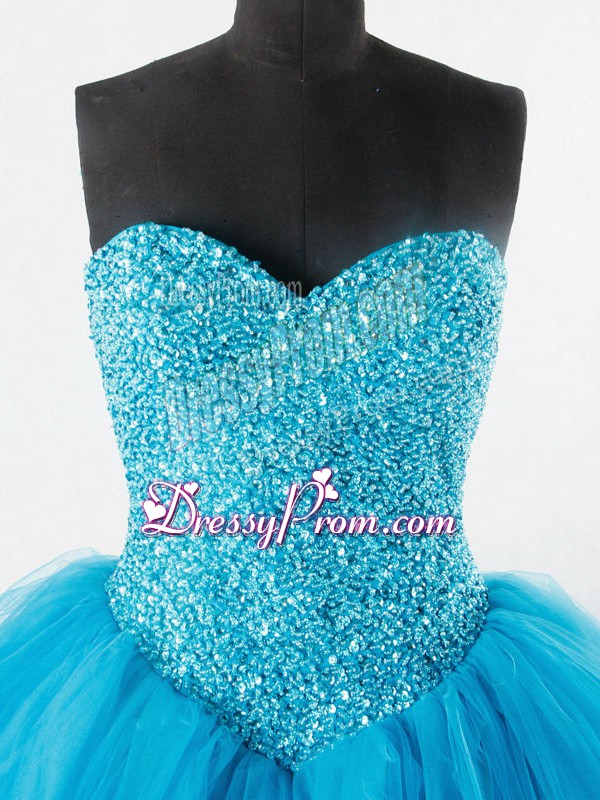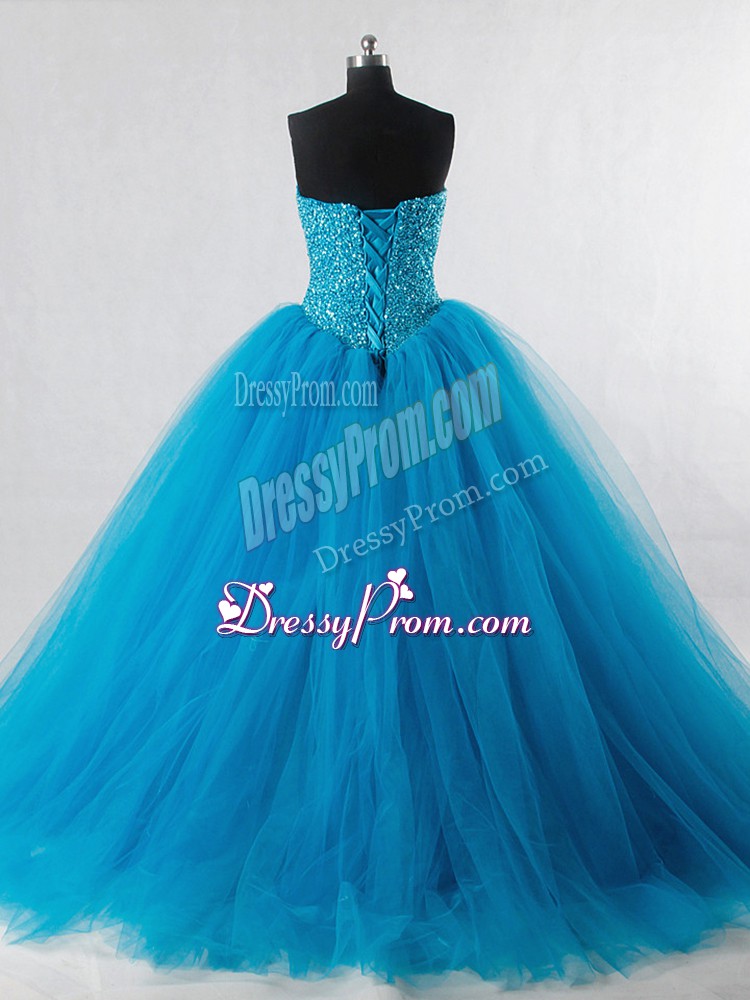Neckline : SweetheartShown Color : Baby BlueSilhouette : Ball GownsSleeve Length : sleevelessHemline : floor lengthBack Detail : Lace upFabric : TulleEmbellishment : BeadingOccasion : Sweet 16,QuinceaneraSeason : Spring,Summer,Fall,Winter