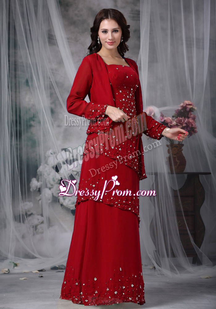 Neckline : StrapsShown Color : Wine RedSilhouette : EmpireSleeve Length : sleevelessHemline : floor lengthBack Detail : ZipperFabric : ChiffonEmbellishment : BeadingOccasion : Prom,PartySeason : Spring,Summer,Fall,Winter