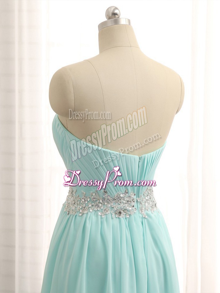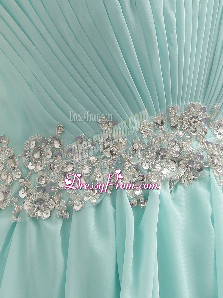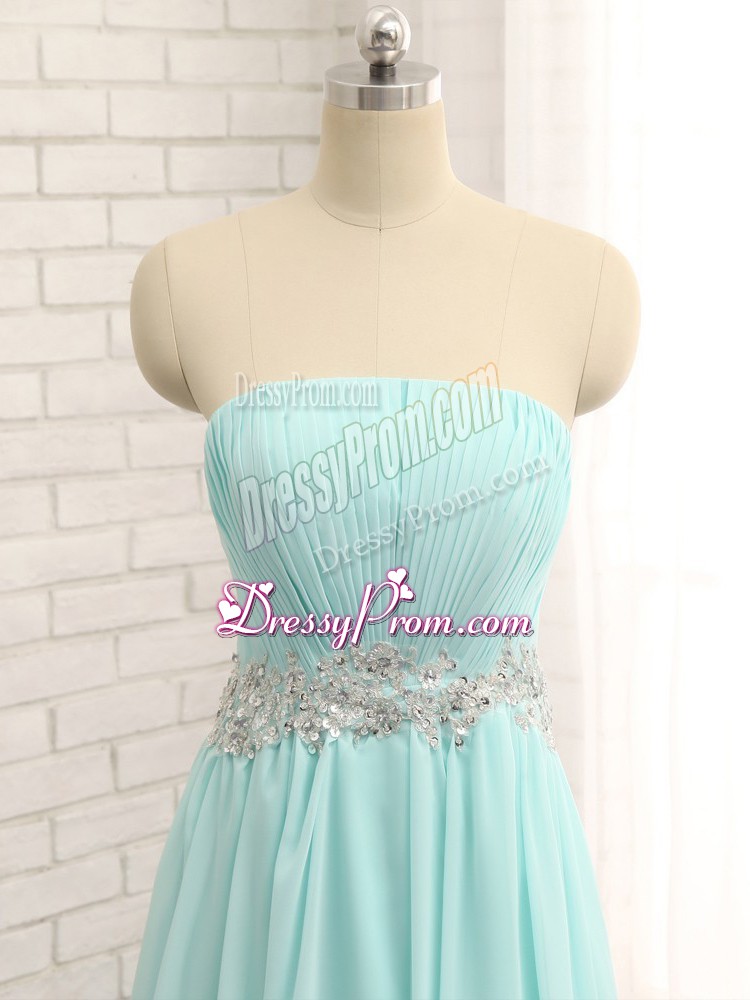 Neckline : StraplessShown Color : Apple GreenSilhouette : EmpireSleeve Length : sleevelessHemline : floor lengthBack Detail : ZipperFabric : ChiffonEmbellishment : Appliques,RuchingOccasion : Prom,Party,Wedding PartySeason : Spring,Summer,Fall,Winter