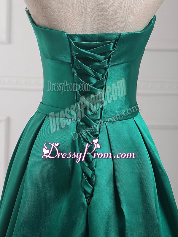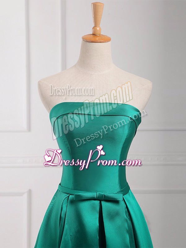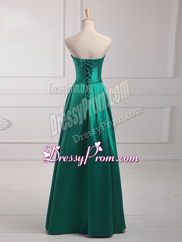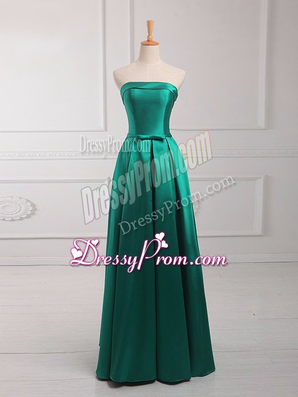 Pretty Empire Court Dresses for Sweet 16 Dark Green Strapless Satin Sleeveless Floor Length Lace Up