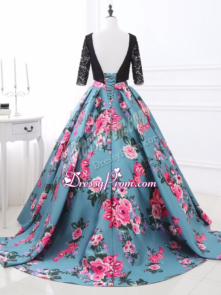 Neckline : ScoopShown Color : Multi-colorSilhouette : MermaidSleeve Length : long sleevesBack Detail : BacklessFabric : PrintedEmbellishment : Lace,AppliquesOccasion : Prom,Military Ball,Sweet 16Season : Spring,Summer,Fall,Winter