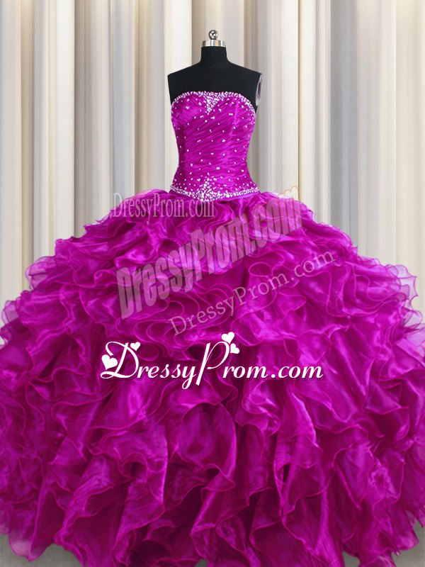 Sleeveless Lace Up Floor Length Beading and Ruffles Sweet 16 Dresses