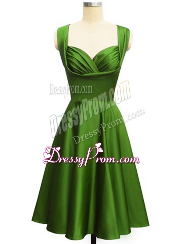 Neckline : StrapsShown Color : GreenSilhouette : EmpireSleeve Length : sleevelessHemline : knee lengthBack Detail : Lace upFabric : TaffetaEmbellishment : RuchingOccasion : Prom,Party,Wedding PartySeason : Spring,Summer,Fall
