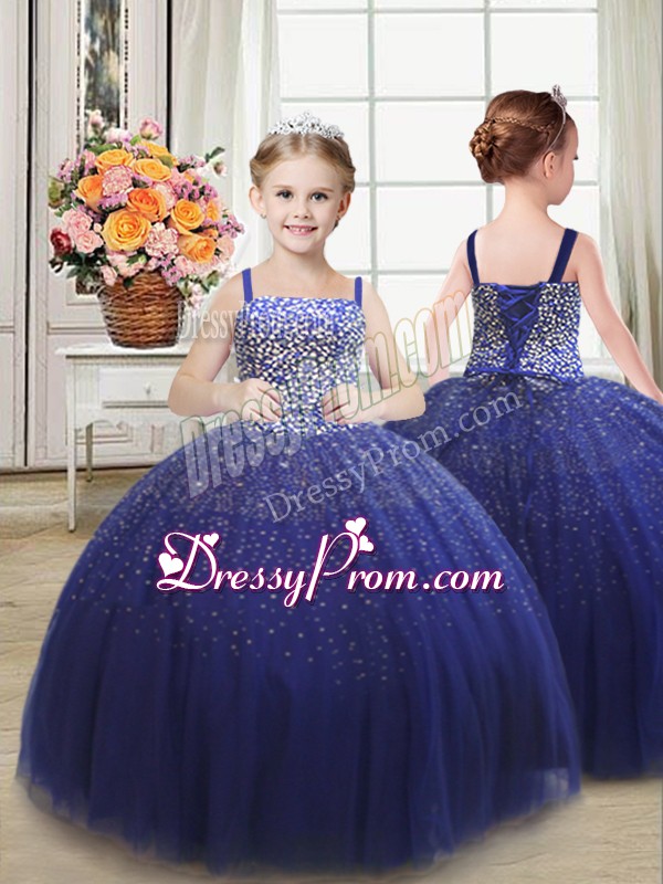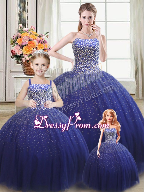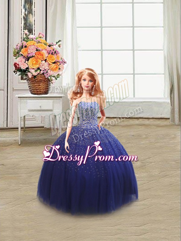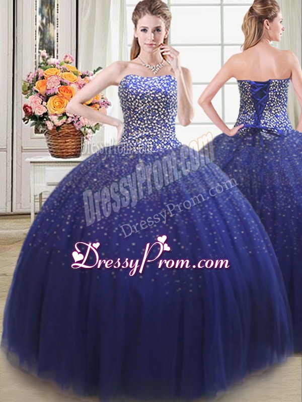 Neckline : StraplessShown Color : Royal BlueSilhouette : Ball GownsSleeve Length : sleevelessHemline : floor lengthBack Detail : Lace upFabric : TulleEmbellishment : BeadingOccasion : Military Ball,Sweet 16,QuinceaneraSeason : Spring,Summer,Fall,Winter