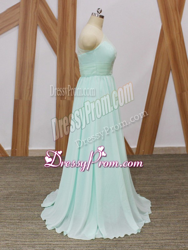 Best Selling Apple Green Sleeveless Chiffon Sweep Train Side Zipper Damas Dress for Prom and Party and Wedding Party