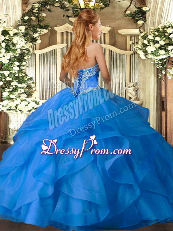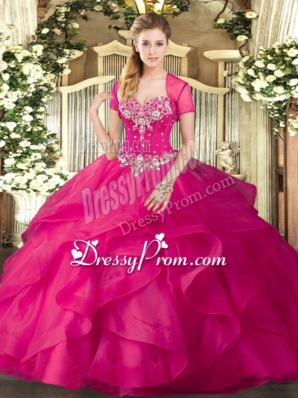 Dynamic Hot Pink Ball Gowns Beading and Ruffles Quinceanera Dress Lace Up Tulle Sleeveless Floor Length