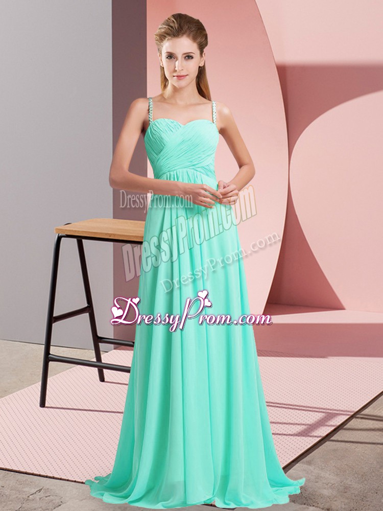 Neckline : Spaghetti strapsShown Color : TurquoiseSilhouette : EmpireSleeve Length : sleevelessBack Detail : BacklessFabric : ChiffonEmbellishment : RuchingOccasion : Prom,PartySeason : Spring,Summer,Fall,Winter