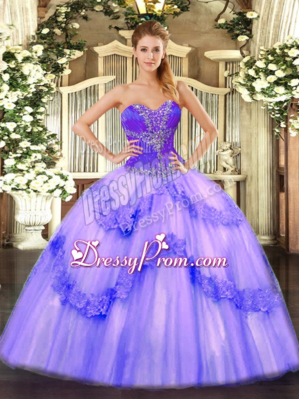 Sexy Lavender Lace Up Sweetheart Beading Sweet 16 Quinceanera Dress Tulle Sleeveless
