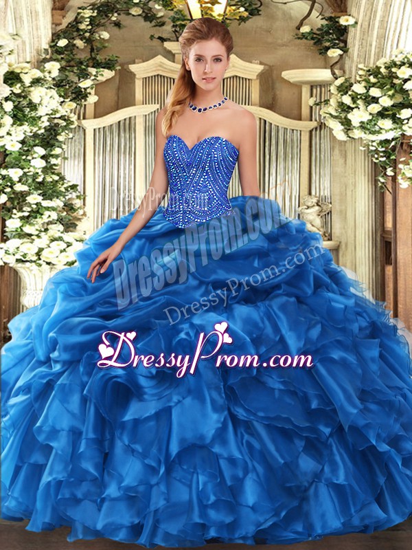 Smart Blue Sweet 16 Quinceanera Dress Military Ball and Sweet 16 and Quinceanera with Beading and Ruffles and Pick Ups Sweetheart Sleeveless Lace Up