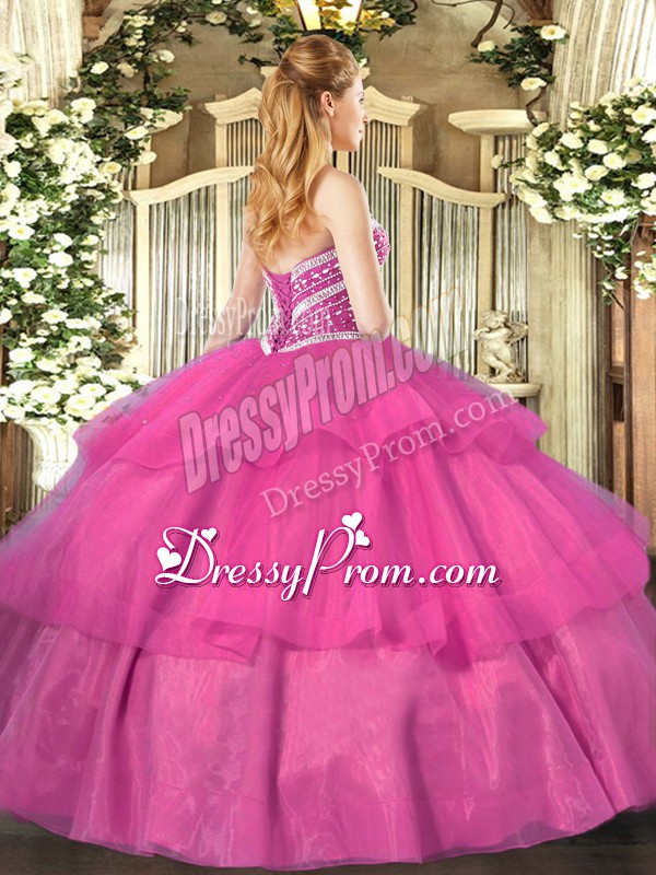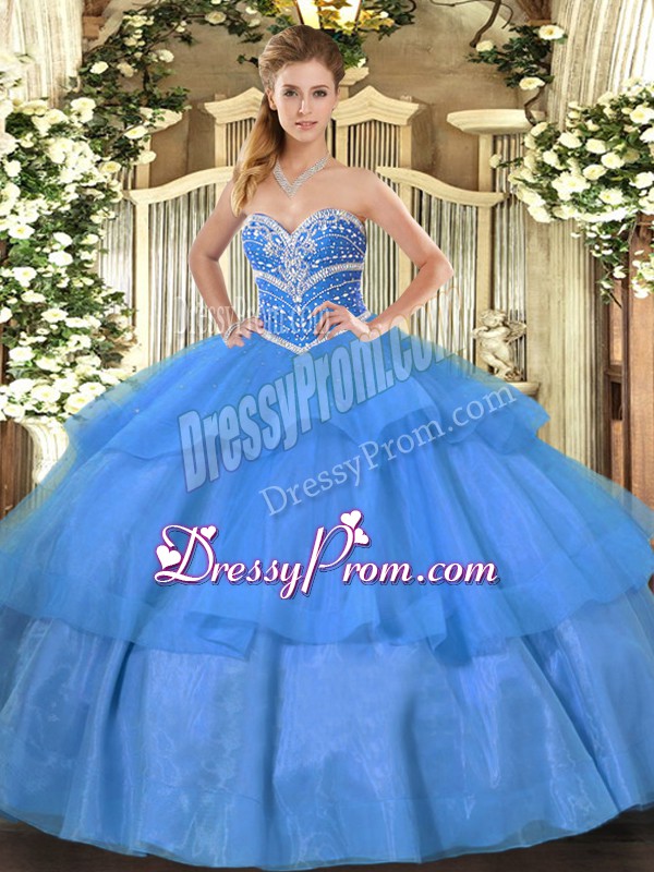 Neckline : SweetheartShown Color : BlueSilhouette : Ball GownsSleeve Length : sleevelessHemline : floor lengthBack Detail : Lace upFabric : TulleEmbellishment : Beading,Ruffled LayersOccasion : Military Ball,Sweet 16,QuinceaneraSeason : Spring,Summer,Fall,Winter