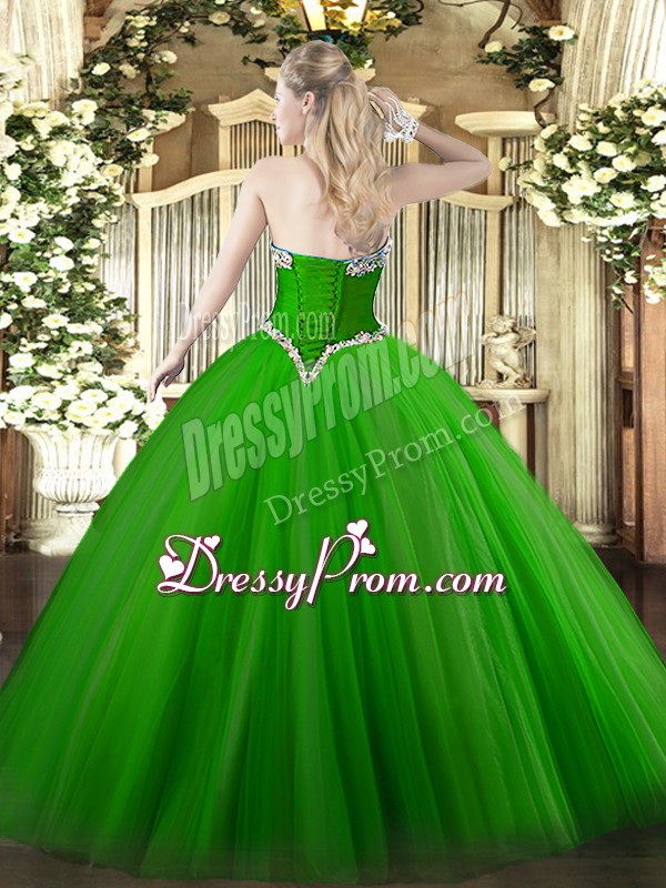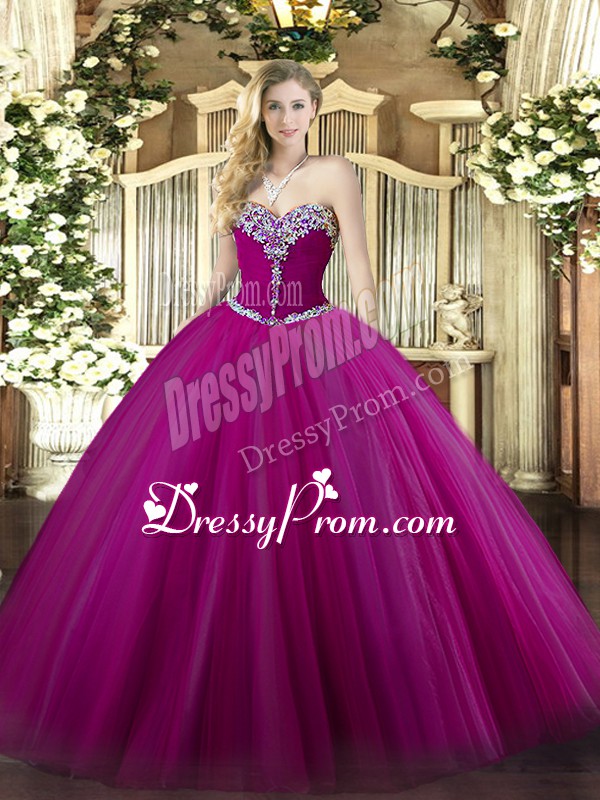 Neckline : SweetheartShown Color : FuchsiaSilhouette : Ball GownsSleeve Length : sleevelessHemline : floor lengthBack Detail : Lace upFabric : TulleEmbellishment : BeadingOccasion : Military Ball,Sweet 16,QuinceaneraSeason : Spring,Summer,Fall,Winter