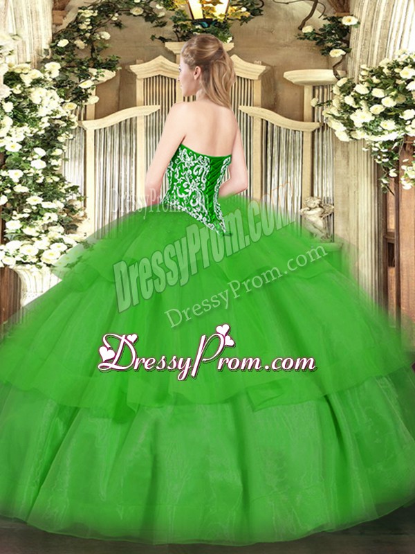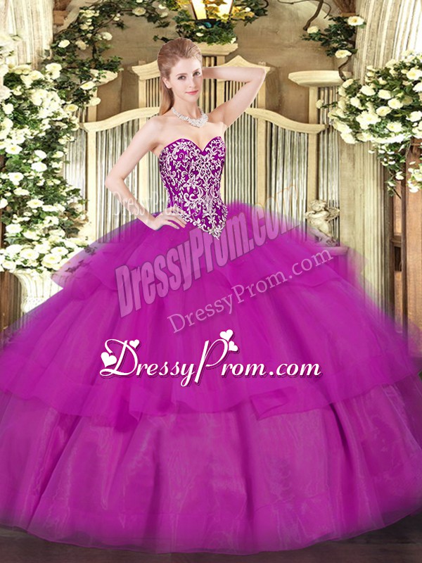 Neckline : SweetheartShown Color : FuchsiaSilhouette : Ball GownsSleeve Length : sleevelessHemline : floor lengthBack Detail : Lace upFabric : TulleEmbellishment : Beading,Ruffled LayersOccasion : Military Ball,Sweet 16,QuinceaneraSeason : Spring,Summer,Fall,Winter
