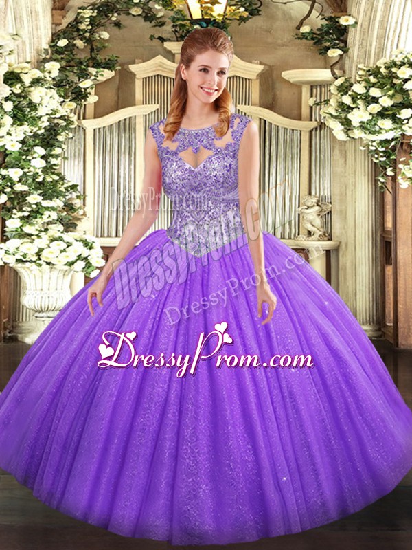 Adorable Sleeveless Floor Length Beading Lace Up Quinceanera Dresses with Lavender