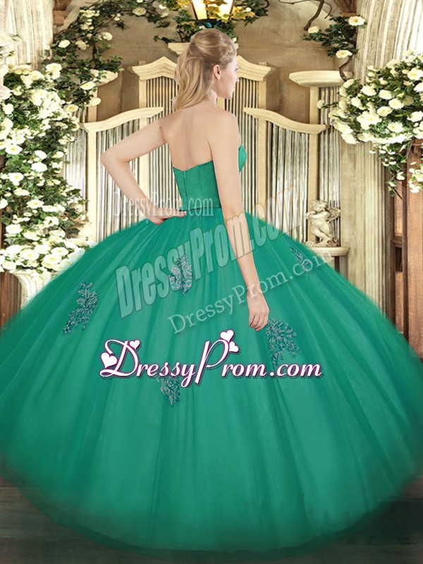 Neckline : StraplessShown Color : Olive GreenSilhouette : Ball GownsSleeve Length : sleevelessHemline : floor lengthBack Detail : ZipperFabric : TulleEmbellishment : AppliquesOccasion : Military Ball,Sweet 16,QuinceaneraSeason : Spring,Summer,Fall,Winter
