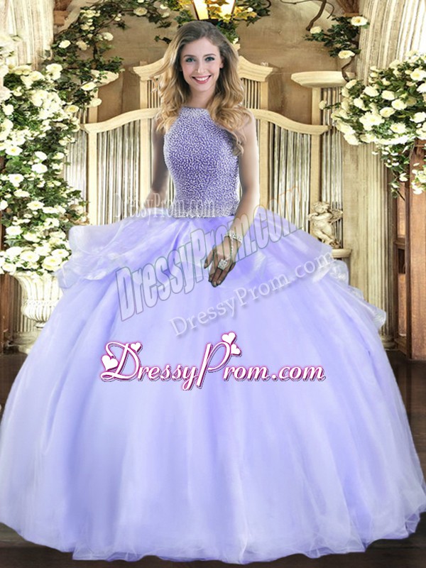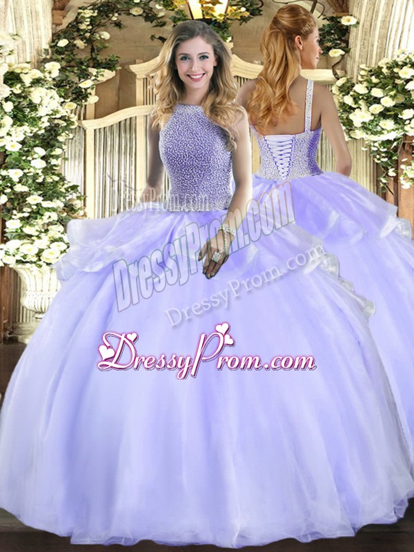 Neckline : SquareShown Color : LavenderSilhouette : Ball GownsSleeve Length : sleevelessHemline : floor lengthBack Detail : Lace upFabric : OrganzaEmbellishment : BeadingOccasion : Military Ball,Sweet 16,QuinceaneraSeason : Spring,Summer,Fall,Winter