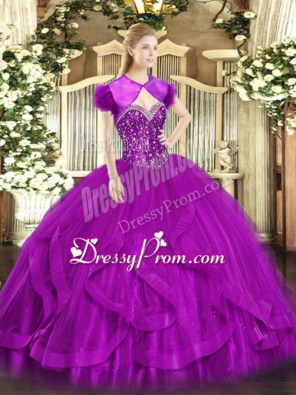 Custom Design Sleeveless Beading and Ruffles Lace Up 15th Birthday Dress