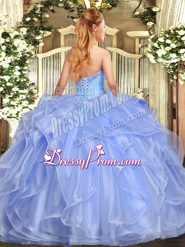 Neckline : StraplessShown Color : Rose Pink Silhouette : Ball GownsSleeve Length : sleevelessHemline : floor lengthBack Detail : Lace upFabric : OrganzaEmbellishment : Appliques,RufflesOccasion : Military Ball,Sweet 16,QuinceaneraSeason : Spring,Summer,Fall,Winter