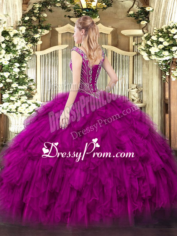 V-neck Neckline Beading and Ruffles Sweet 16 Dress Sleeveless Lace Up
