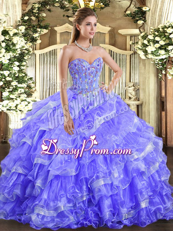 Charming Sleeveless Lace Up Floor Length Embroidery and Ruffled Layers Quinceanera Dresses