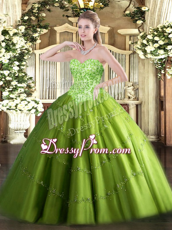 Pretty Tulle Lace Up Sweetheart Sleeveless Floor Length Sweet 16 Dress Appliques