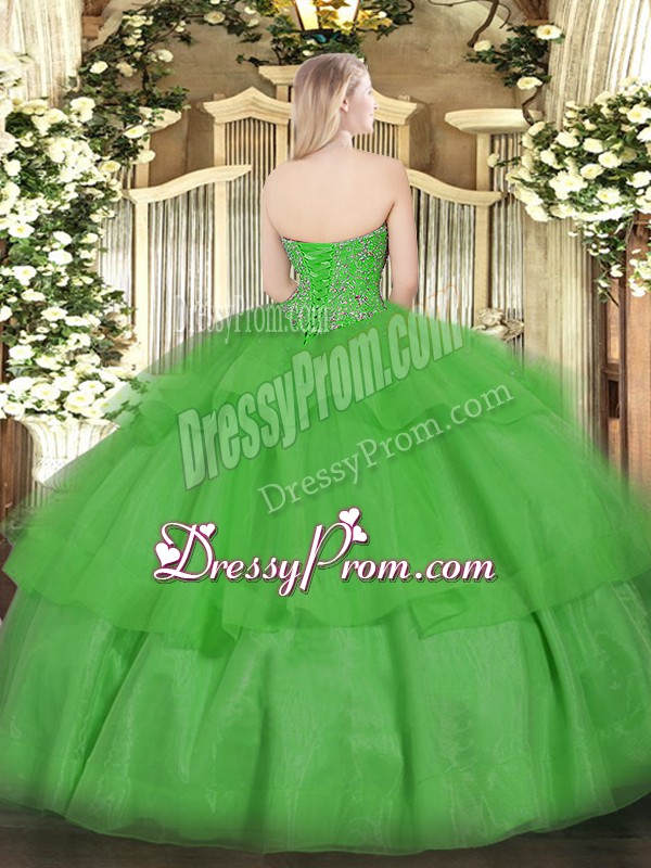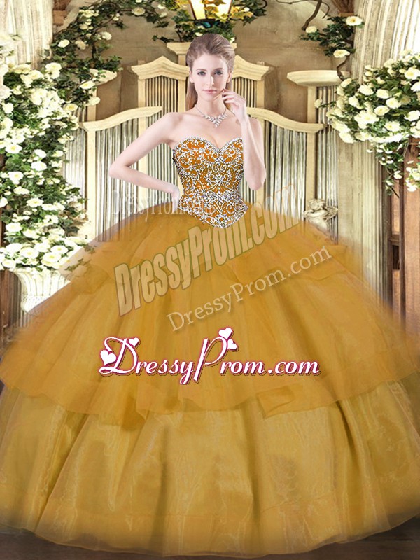 Neckline : SweetheartShown Color : BrownSilhouette : Ball GownsSleeve Length : sleevelessHemline : floor lengthBack Detail : Lace upFabric : OrganzaEmbellishment : Beading,Ruffled LayersOccasion : Military Ball,Sweet 16,QuinceaneraSeason : Spring,Summer,Fall,Winter