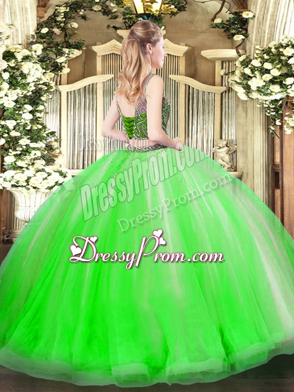 Neckline : ScoopShown Color : Coral RedSilhouette : Two PiecesSleeve Length : sleevelessHemline : floor lengthBack Detail : Lace upFabric : TulleEmbellishment : Beading,RufflesOccasion : Military Ball,Sweet 16,QuinceaneraSeason : Spring,Summer,Fall,Winter