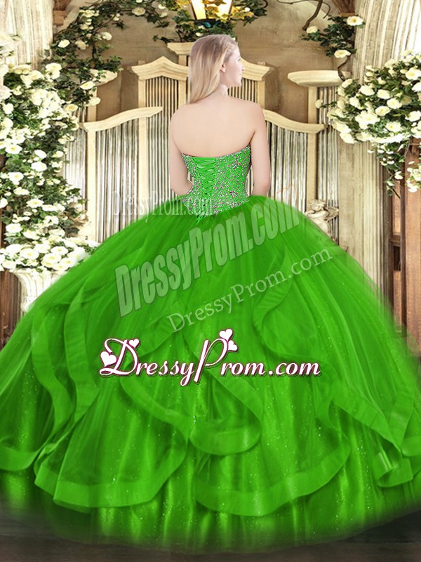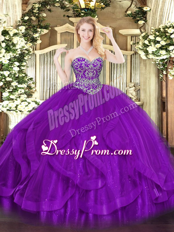 Neckline : SweetheartShown Color : Eggplant PurpleSilhouette : Ball GownsSleeve Length : sleevelessHemline : floor lengthBack Detail : Lace upFabric : TulleEmbellishment : RufflesOccasion : Military Ball,Sweet 16,QuinceaneraSeason : Spring,Summer,Fall,Winter