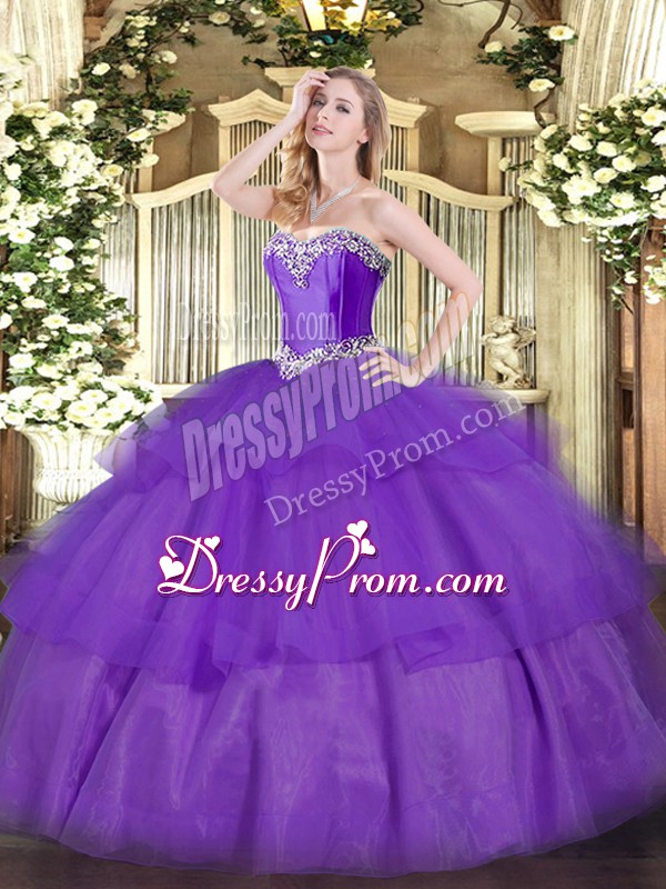 Wonderful Lavender Tulle Lace Up Sweetheart Sleeveless Floor Length Quinceanera Dresses Beading and Ruffled Layers