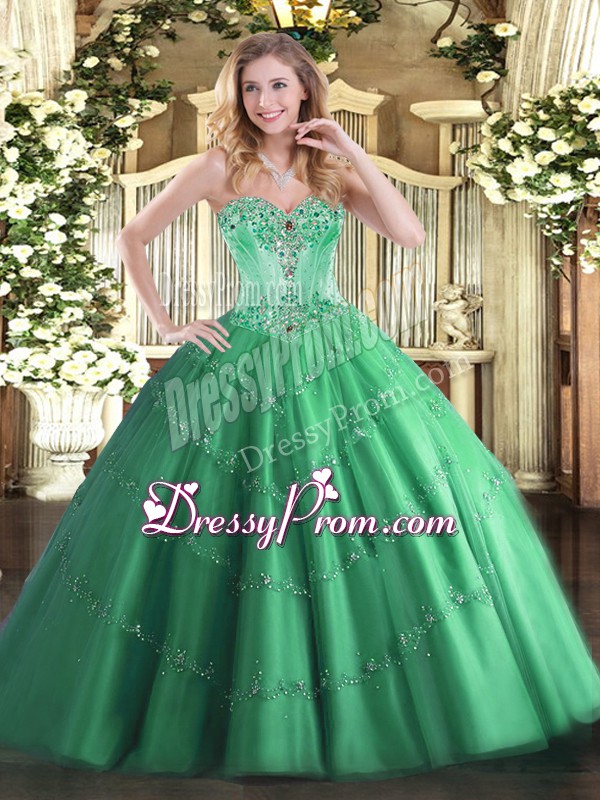Neckline : SweetheartShown Color : TurquoiseSilhouette : Ball GownsSleeve Length : sleevelessHemline : floor lengthBack Detail : Lace upFabric : TulleEmbellishment : Beading,AppliquesOccasion : Sweet 16,QuinceaneraSeason : Spring,Summer,Fall,Winter