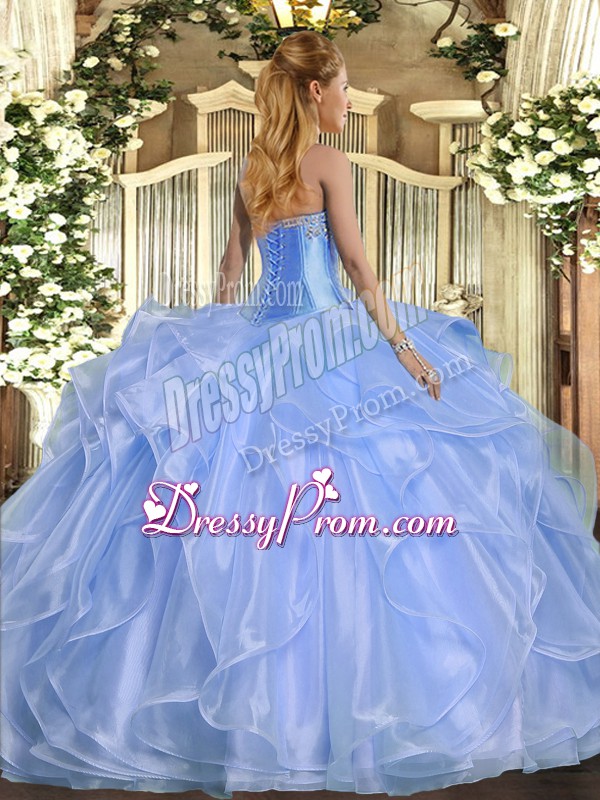 Graceful Sleeveless Lace Up Floor Length Beading and Ruffles Quinceanera Gown