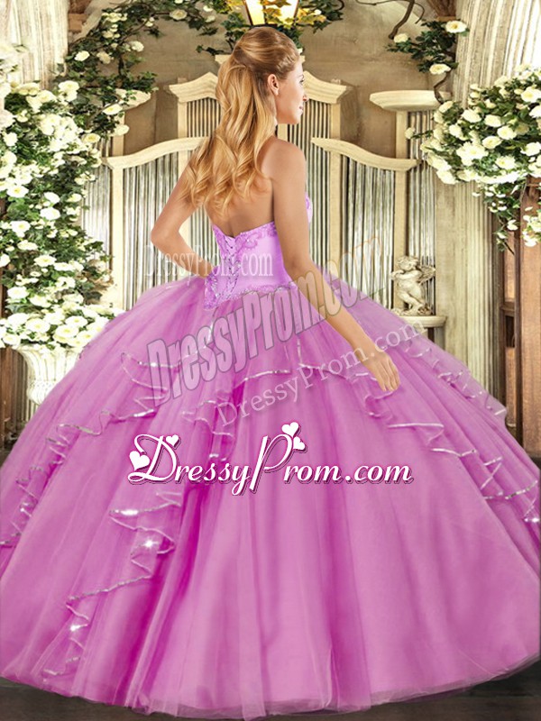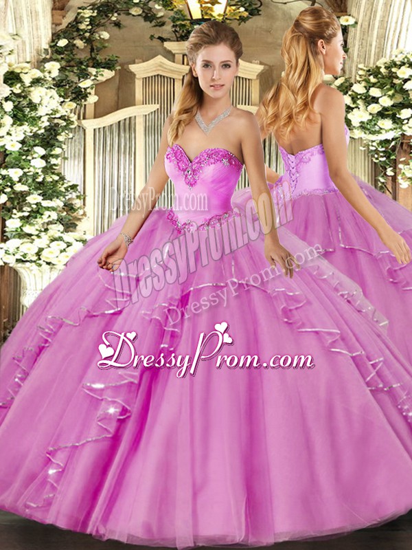 Vintage Beading and Ruffles Sweet 16 Quinceanera Dress Lilac Lace Up Sleeveless Floor Length