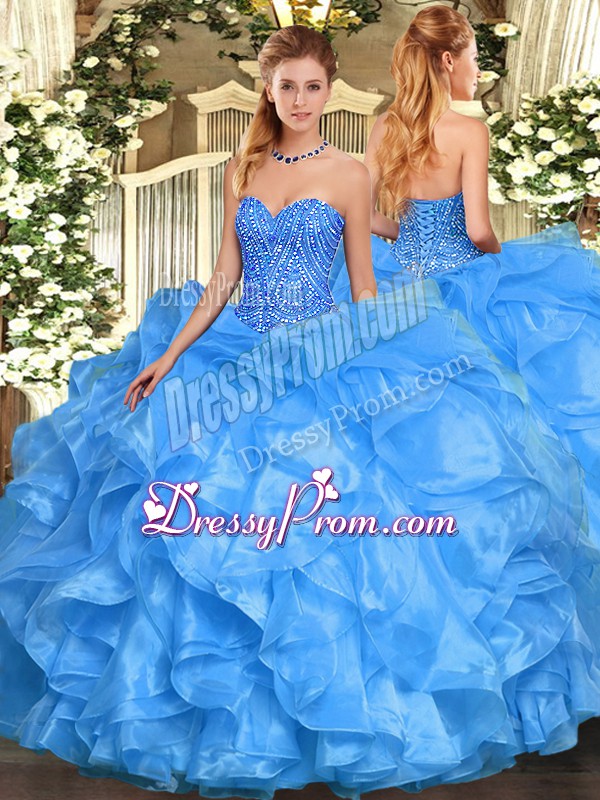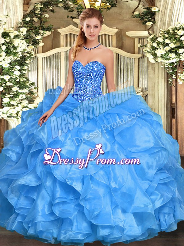 Beading and Ruffles Quinceanera Dress Baby Blue Lace Up Sleeveless Floor Length