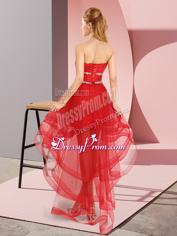 Neckline : SweetheartShown Color : Baby BlueSilhouette : A-lineSleeve Length : sleevelessHemline : high lowBack Detail : Lace upFabric : TulleEmbellishment : BeadingOccasion : Prom,PartySeason : Spring,Summer,Fall,Winter