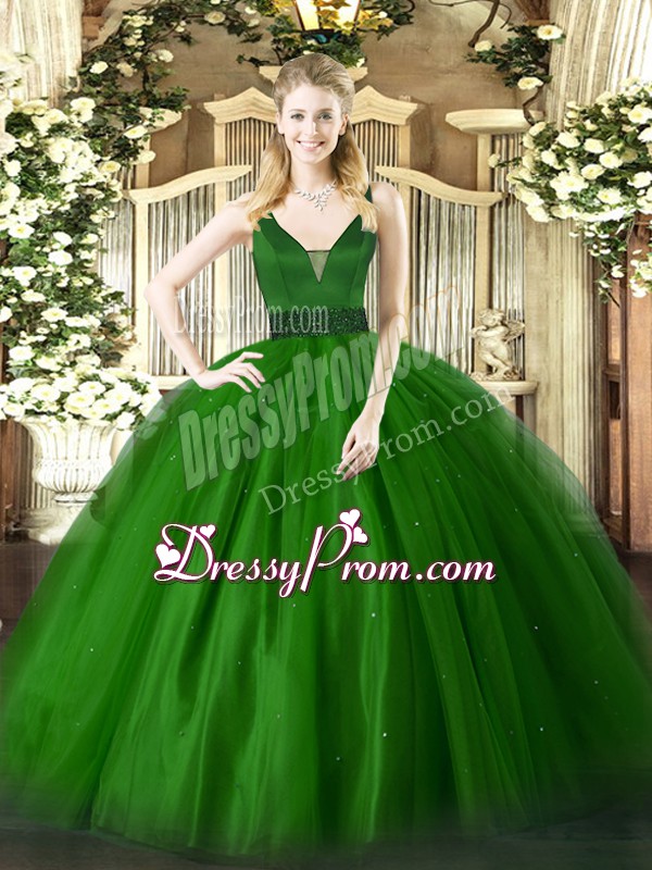 Neckline : StrapsShown Color : GreenSilhouette : Ball GownsSleeve Length : sleevelessHemline : floor lengthBack Detail : ZipperFabric : TulleEmbellishment : BeadingOccasion : Military Ball,Sweet 16,QuinceaneraSeason : Spring,Summer,Fall,Winter