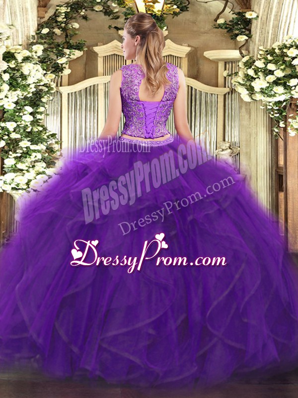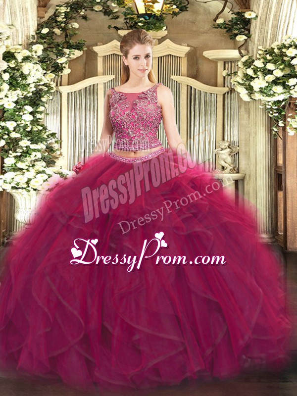 Best Selling Fuchsia Tulle Lace Up 15 Quinceanera Dress Sleeveless Floor Length Beading and Ruffles