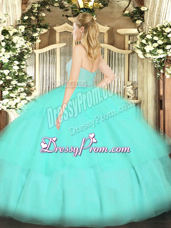 Neckline : SweetheartShown Color : GoldSilhouette : Ball GownsSleeve Length : sleevelessHemline : floor lengthBack Detail : ZipperFabric : TulleEmbellishment : Beading,Lace,Ruffled LayersOccasion : Military Ball,Sweet 16,QuinceaneraSeason : Spring,Summer,Fall,Winter