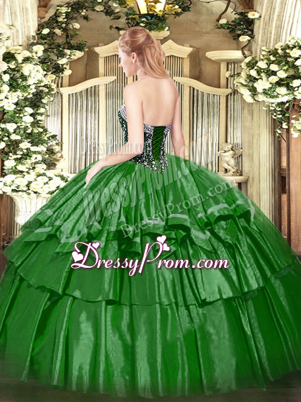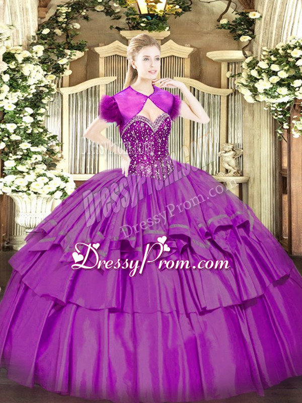 Neckline : SweetheartShown Color : FuchsiaSilhouette : Ball GownsSleeve Length : sleevelessHemline : floor lengthBack Detail : Lace upFabric : Organza,TaffetaEmbellishment : Beading,Ruffled LayersOccasion : Military Ball,Sweet 16,QuinceaneraSeason : Spring,Summer,Fall,Winter