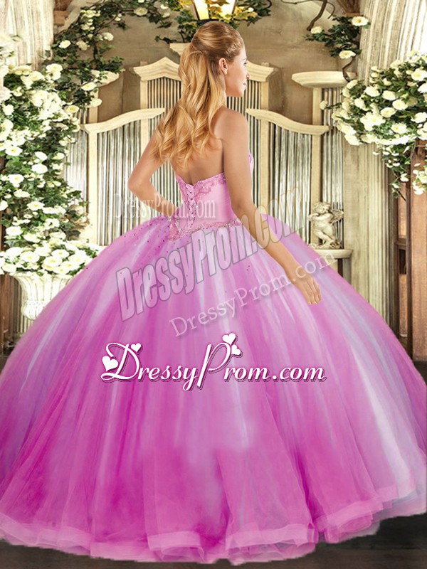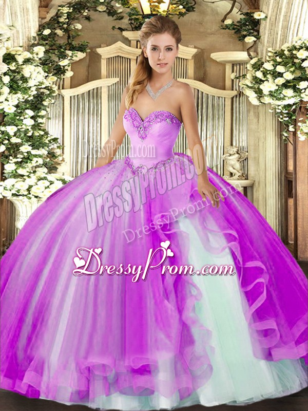 Romantic Sleeveless Floor Length Beading and Ruffles Lace Up Sweet 16 Quinceanera Dress with Lilac
