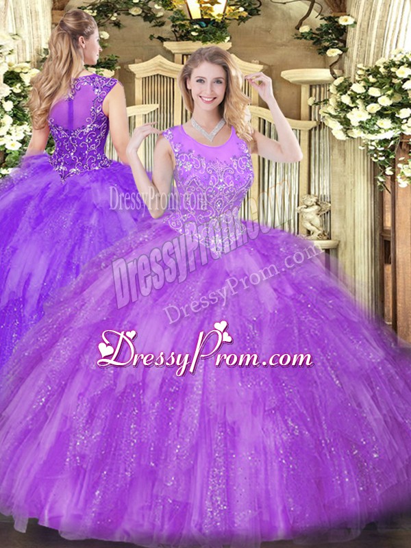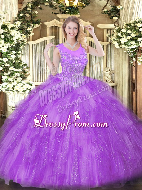Fine Floor Length Ball Gowns Sleeveless Lavender Sweet 16 Dresses Zipper