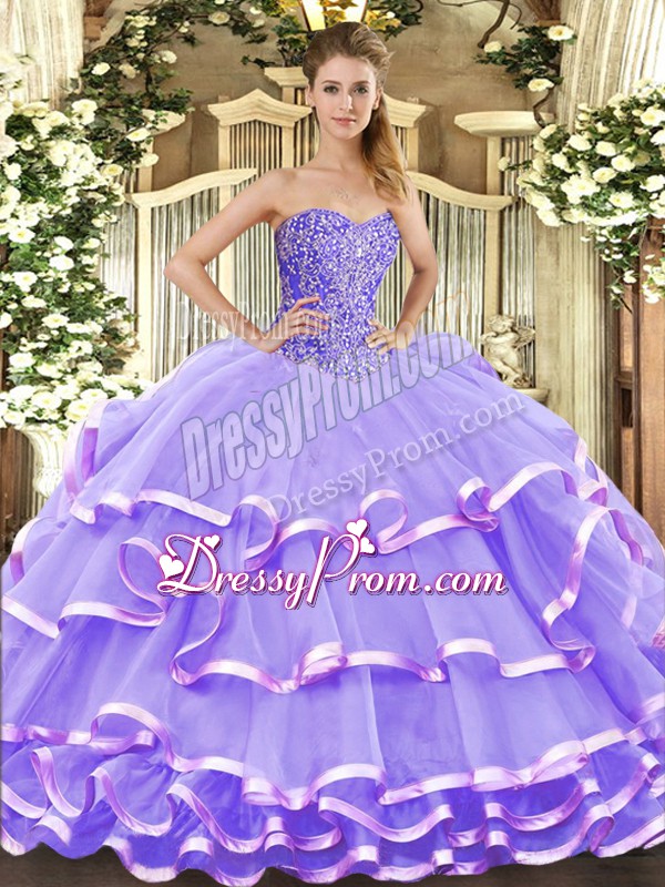 Floor Length Ball Gowns Sleeveless Lavender Sweet 16 Dress Lace Up