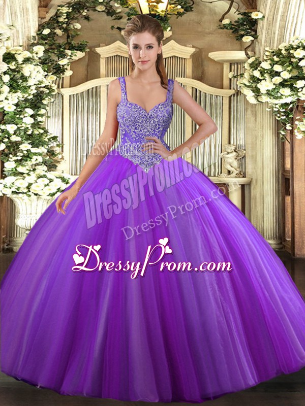 Neckline : V-neckShown Color : PurpleSilhouette : Ball GownsSleeve Length : sleevelessHemline : floor lengthBack Detail : Lace upFabric : TulleEmbellishment : BeadingOccasion : Military Ball,Sweet 16,QuinceaneraSeason : Spring,Summer,Fall,Winter