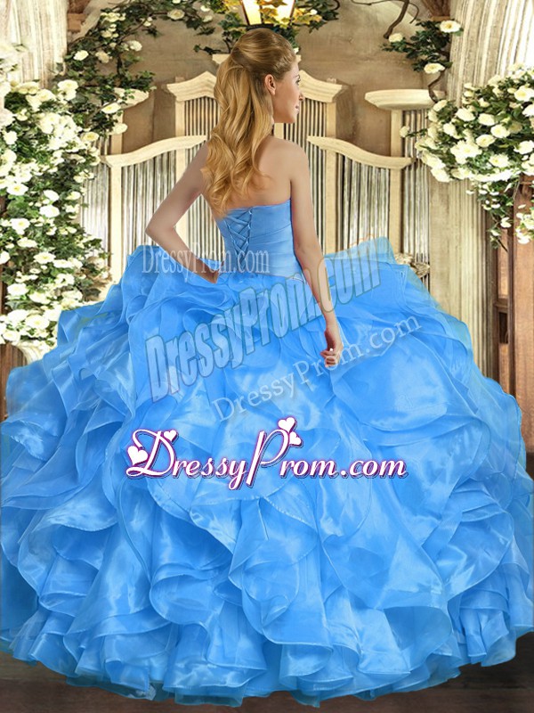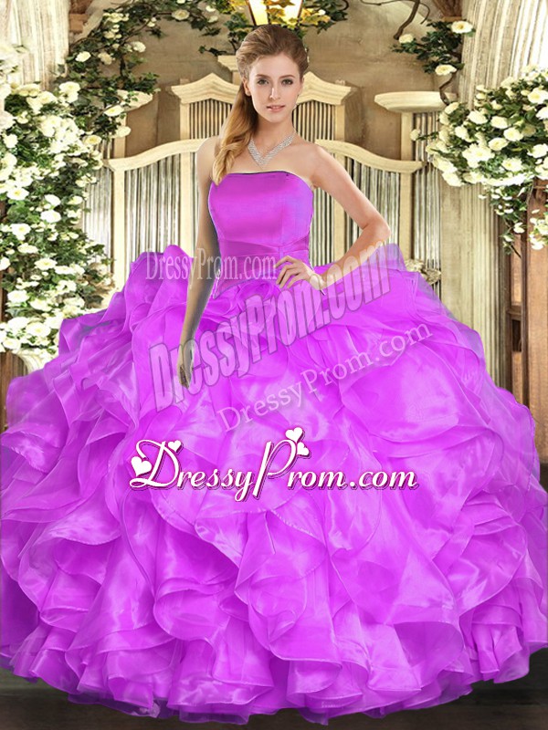 Neckline : StraplessShown Color : LilacSilhouette : Ball GownsSleeve Length : sleevelessHemline : floor lengthBack Detail : Lace upFabric : OrganzaEmbellishment : RufflesOccasion : Military Ball,Sweet 16,QuinceaneraSeason : Spring,Summer,Fall,Winter