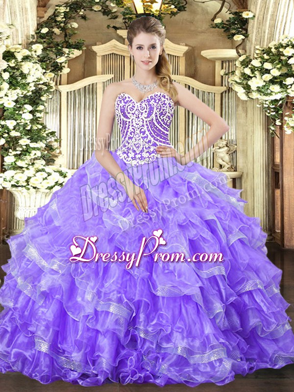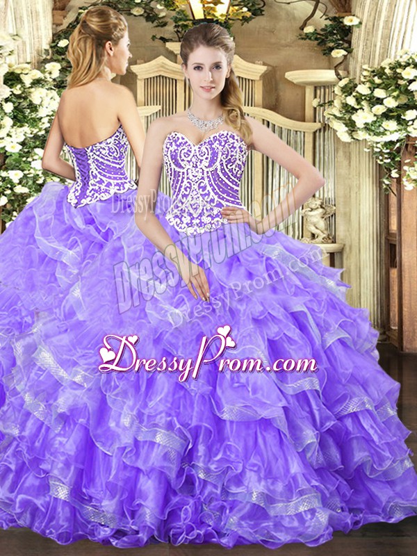 Edgy Floor Length Ball Gowns Sleeveless Lavender 15th Birthday Dress Lace Up