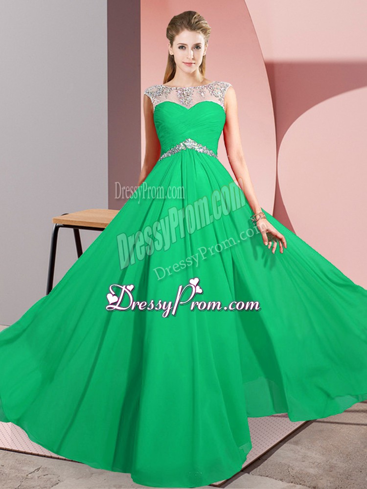 Neckline : ScoopShown Color : GreenSilhouette : EmpireSleeve Length : sleevelessHemline : floor lengthBack Detail : Clasp handleFabric : ChiffonEmbellishment : BeadingOccasion : Prom,PartySeason : Spring,Summer,Winter