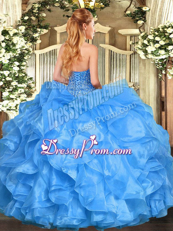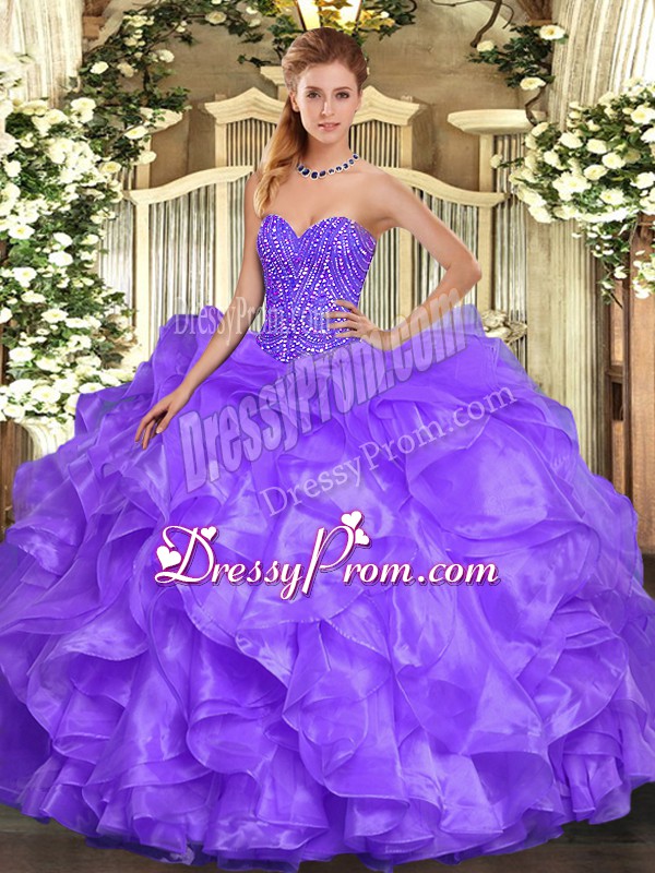Wonderful Lavender Ball Gowns Organza Sweetheart Sleeveless Beading and Ruffles Floor Length Lace Up 15 Quinceanera Dress