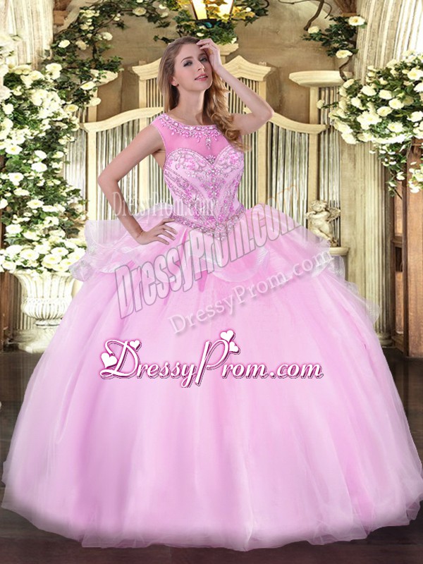 Neckline : ScoopShown Color : Pink Silhouette : Ball GownsSleeve Length : sleevelessHemline : floor lengthBack Detail : ZipperFabric : OrganzaEmbellishment : BeadingOccasion : Sweet 16,QuinceaneraSeason : Spring,Summer,Fall,Winter