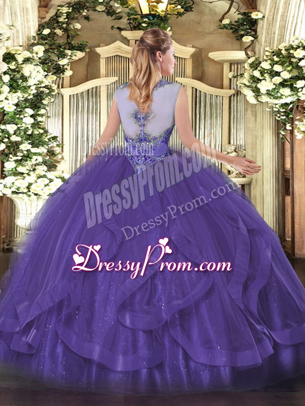Neckline : ScoopShown Color : TurquoiseSilhouette : Ball GownsSleeve Length : sleevelessHemline : floor lengthBack Detail : Lace upFabric : TulleEmbellishment : Beading,RufflesOccasion : Sweet 16,QuinceaneraSeason : Spring,Summer,Fall,Winter