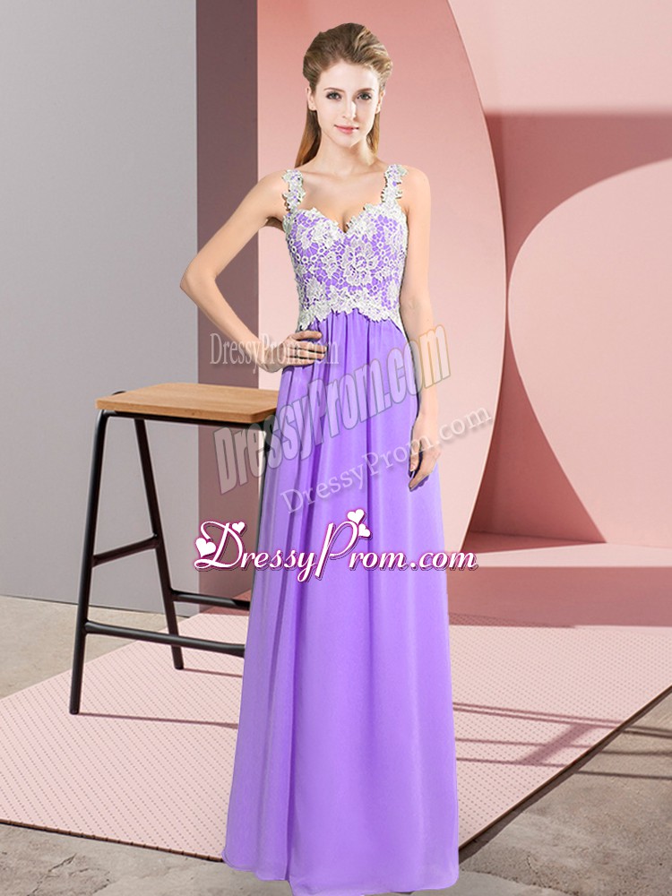 Neckline : V-neckShown Color : LavenderSilhouette : EmpireSleeve Length : sleevelessHemline : floor lengthBack Detail : ZipperFabric : ChiffonEmbellishment : LaceOccasion : Prom,PartySeason : Spring,Summer,Fall,Winter