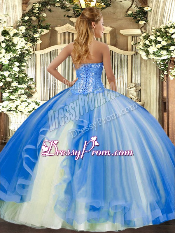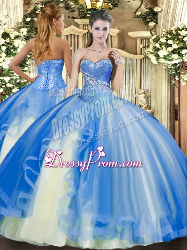 Admirable Sweetheart Sleeveless Quinceanera Dress Floor Length Beading and Ruffles Baby Blue Tulle
