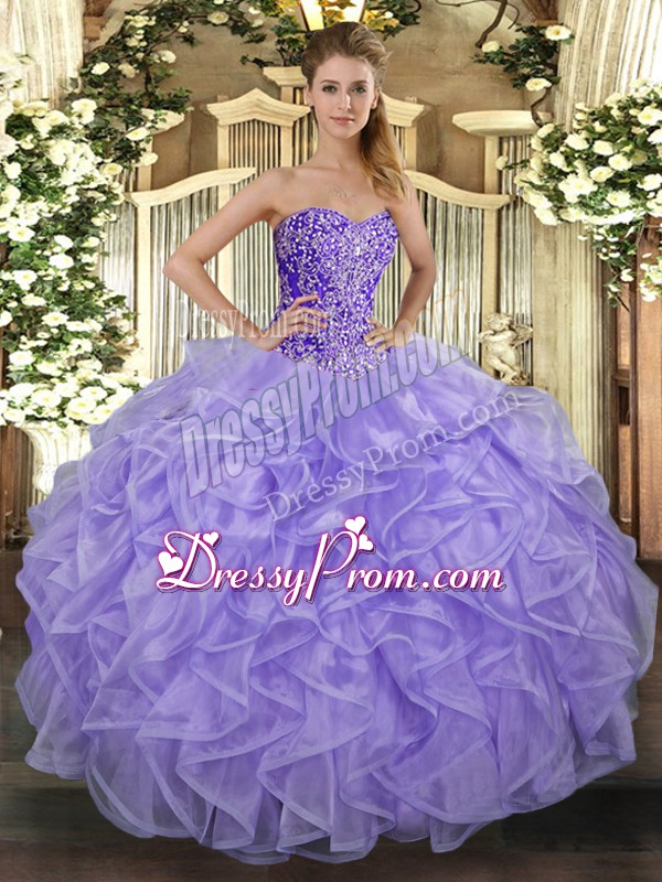 Sweetheart Sleeveless Sweet 16 Dresses Floor Length Beading and Ruffles Lavender Tulle